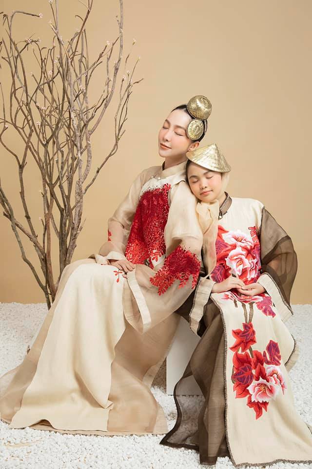 Diễn viên múa Linh Nga và bé Minh Thảo thể hiện bộ sưu tập