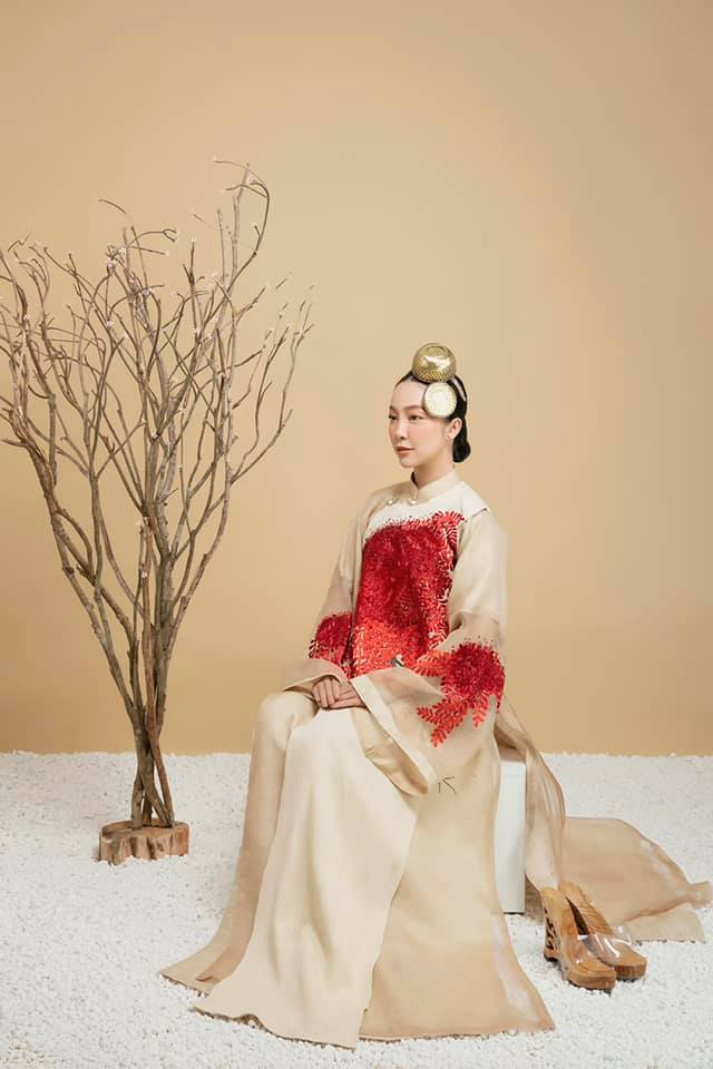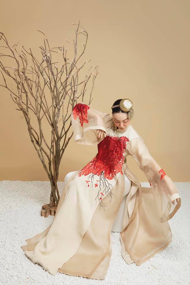 Vũ Việt Hà làm áo dài chất liệu tơ sen