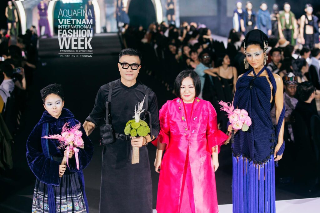 “Ký gửi người Mông vào tương lai” là bộ sưu tập vô cùng quý giá trong cuộc đời làm thiết kế của NTK Vũ Việt Hà . Từ phom dáng, chất liệu vải đuợc nhuộm chàm, phụ kiện cũng như hoạ tiết thêu tay đều nguyên bản được làm thủ công từ bao đời nay. Tại đêm bế mạc Aquafina Vitenam Internaional Fasion Week – Tuần lễ Thời trang Quốc tế Việt Nam Thu Đông 2022, NTK Vũ Việt Hà đã có nhiều kỷ niệm đáng nhớ khi bộ sưu tập “Ký gửi người Mông vào tương lai” của anh được tôn vinh đúng giá trị và là tâm điểm của sự quan tâm.